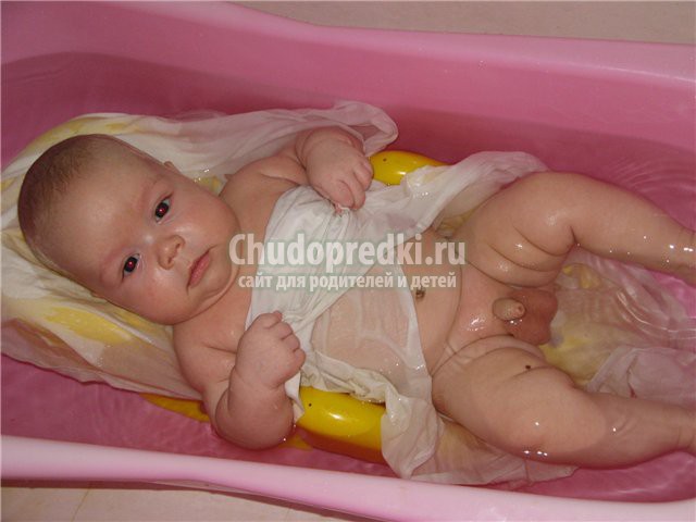 В воду для купания необходимо добавить марганец, хватит двух крупинок. Вода должна стать слегка розоватой. Если у Вас нет марганца, подойдет отвар ромашки. Ромашка обладает дезинфицирующими свойствами, не вызывает аллергии. Отвар ромашки можно приобрести в любой аптеке, как в жидком виде, так и в форме быстро растворяющихся таблеток. Как только все приготовления завершены, можно приступать к купанию.